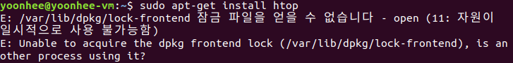리눅스에서 apt를 통해 'htop' 프로그램을 설치하는 도중 에러가 발생했다.