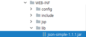WEB-INF/lib 경로에 사용할 json 라이브러리 jar 파일을 넣어주면 된다.