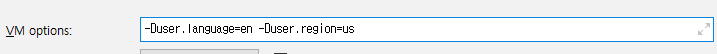 VM options 항목에 " -Duser.language=en -Duser.region=us " 를 작성 및 저장한 뒤 서버 재시작 후 확인해보면 해결된다.