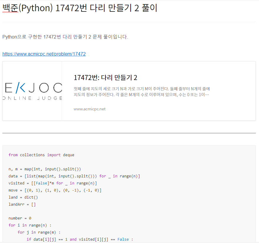 Java로 구현한 2583번 영역 구하기 풀이입니다. https://www.acmicpc.net/problem/2583 2583번: 영역 구하기 첫째 줄에 M과 N, 그리고 K가 빈칸을 사이에 두고 차례로 주어진다. M, N, K는 모두 100 이하의 자연수이다. 둘째 줄부터 K개의 줄에는 한 줄에 하나씩 직사각형의 왼쪽 아래 꼭짓점의 x, y좌표값과 오 www.acmicpc.net import java.util.*; import java.io.*; public class Main { static int n, m; static int[] dx = {-1, 1, 0, 0}; static int[] dy = {0, 0, -1, 1}; static int[][] data; static boolean[][] v..